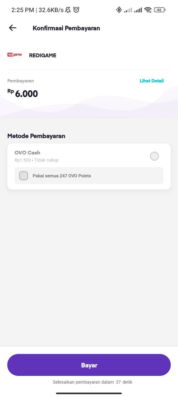Konfirmasi pembayaran akan dikirim ke aplikasi OVO anda, segera lakukan pembayaran sebelum mencapai limit waktu 55 detik.