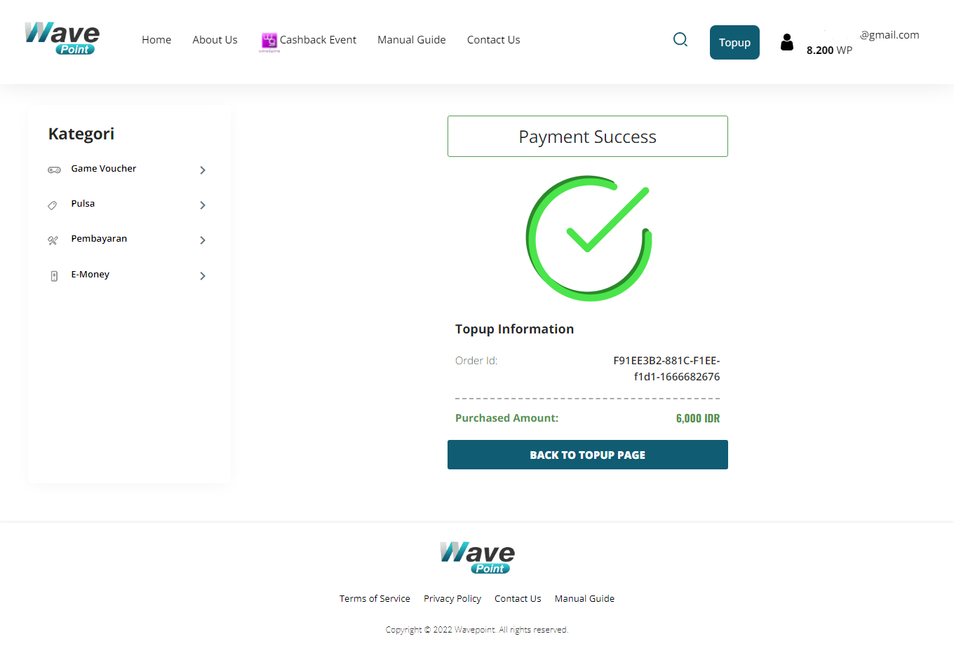 Topup Success dan saldo akan masuk ke akun anda