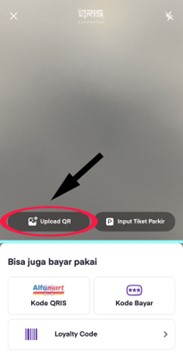Contoh opsi unggah kode QR pada aplikasi Gopay :