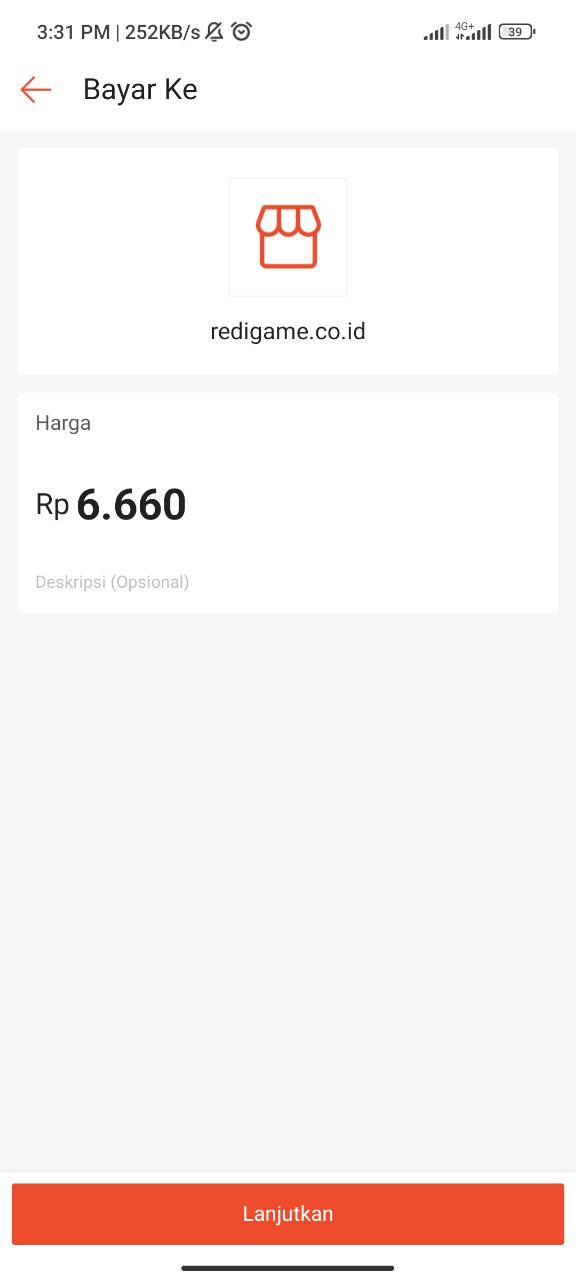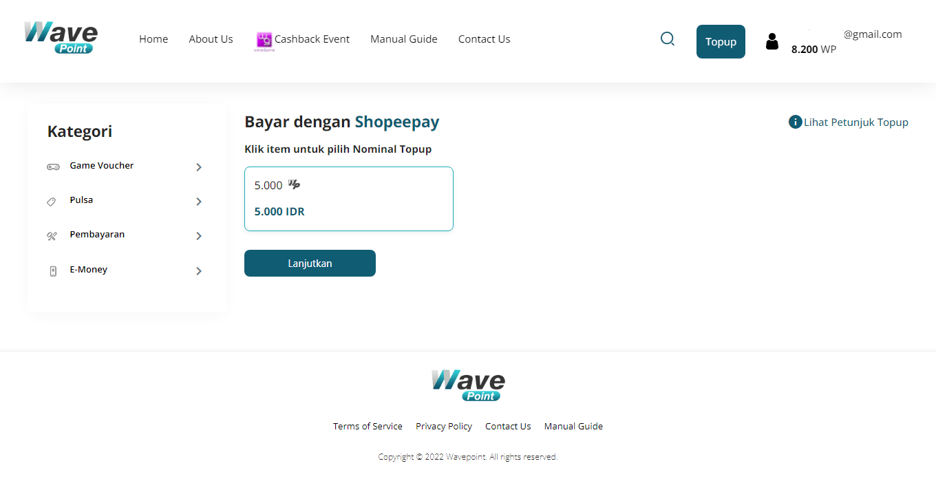 Pilih nominal topup kemudian klik "Lanjutkan"