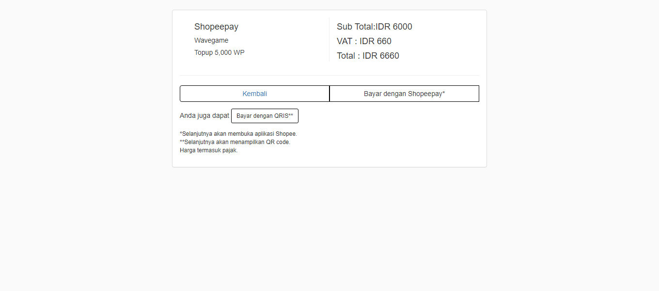 Akan terbuka halaman informasi pembayaran dengan Shopeepay, klik "Bayar dengan Shopeepay*" untuk langsung membuka aplikasi shopeepay ( khusus mobile ), atau klik "Bayar dengan QRIS**" untuk scan melalui QRIS shopeepay.