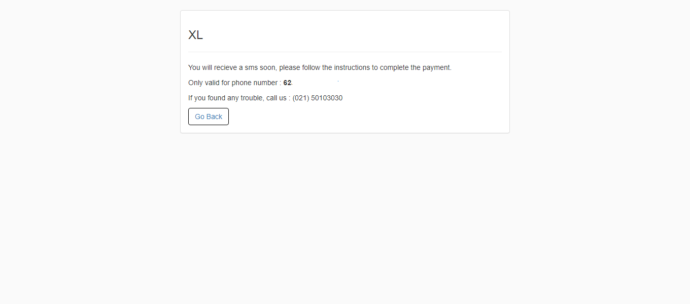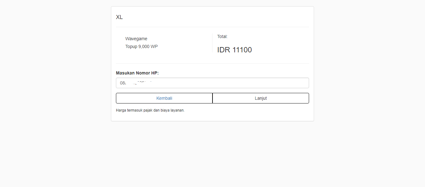 Akan terbuka halaman pembayaran XL, masukkan nomor XL yang valid kemudian klik "Lanjut".