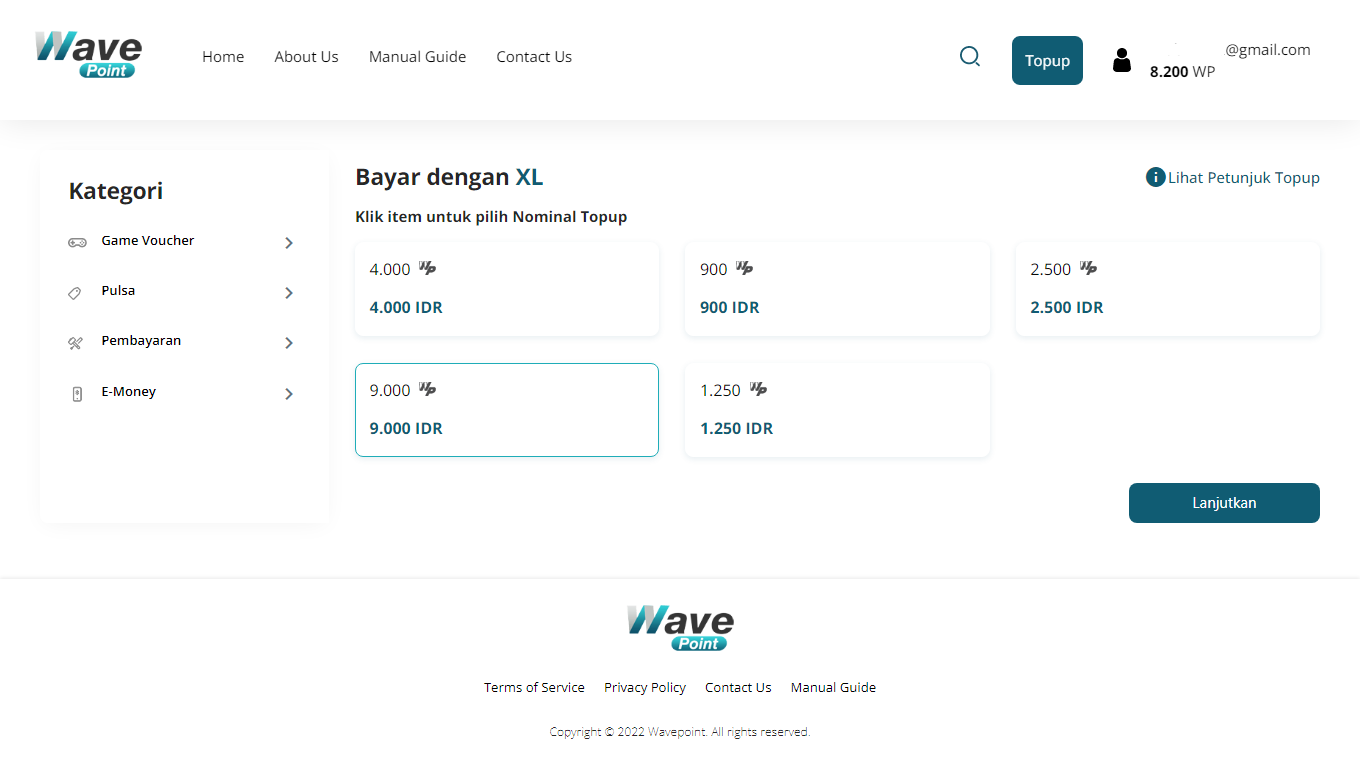 Pilih nominal topup kemudian klik "Lanjutkan"